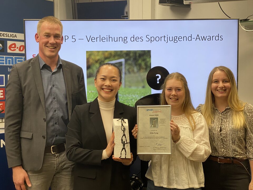 Im Rahmen der Jugendversammlung der Sportjugend im Stadtsportverband Paderborn e.V. wurde Kitty Fong für ihr herausragendes ehrenamtliches Engagement in der Turnabteilung des SC Grün-Weiß Paderborn mit dem Sportjugend-Award 2022 ausgezeichnet.