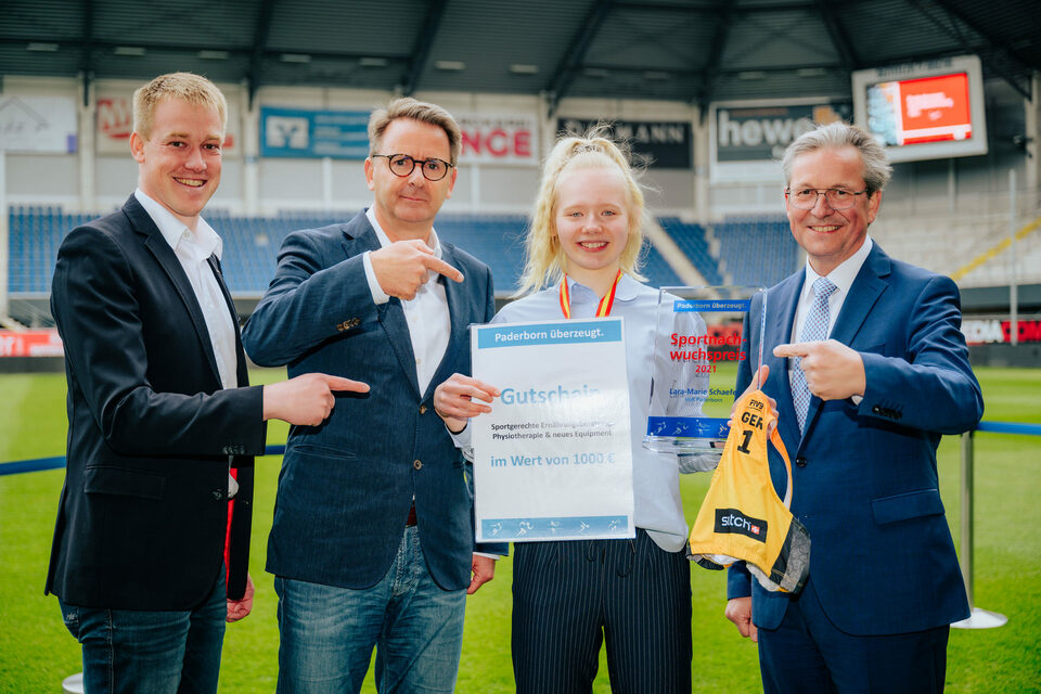 Nach zwei Jahren Zwangspause aufgrund der Corona-Pandemie ist die Sportlerehrung der Stadt Paderborn endlich zurück: 182 Kinder und Jugendliche sowie 131 Junioren/Erwachsene wurden für ihre herausragenden Leistungen im Jahr 2021 geehrt. Die traditionsreiche Veranstaltung fand erstmals und mit großem Erfolg in der Benteler-Arena statt. Auch wurden während der Sportlerehrung zum ersten Mal die Sportlerin, der Sportler und die Mannschaft des Jahres ausgezeichnet und der Medienpreis sowie der Sportnachwuchspreis des Vereins „Paderborn überzeugt“ vergeben. Diese Ehrungen werden normalerweise beim Sportlerball vorgenommen, der allerdings erneut nicht stattfindet. „Ich bin sehr froh, dass wir die Sportlerehrung in diesem Jahr endlich wieder durchführen können“, sagte Dirk Happe, Leiter des Paderborner Sportservice, der die Veranstaltung mit seinen Kolleginnen und Kollegen organisiert hatte.